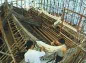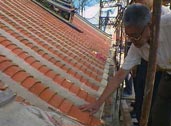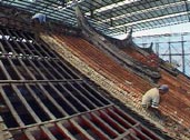 Once all the beams and battens had been replaced, reconstruction started on the valley area between the main temple building and the prayer hall. The previous builders had introduced a turtle hump formation - an ingenious way to ensure good drainage at the valley area.