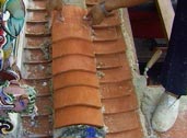 Removal of the roof tiles began at the central roof bay. The position coincided with that of the Goddess Of Mercy below. Although the tiles were carefully removed, at least 80 % were no longer usable. These were tiles severely damaged through age, prolonged exposure, porosity and brittleness.